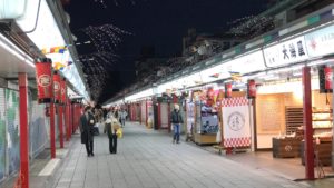 再び5000人を超えた1月18日の浅草の夕方の様子である。浅草寺の本堂や宝蔵門のライトアップがされていなかった。コロナ禍の収束を静かに願うような佇まいであった。