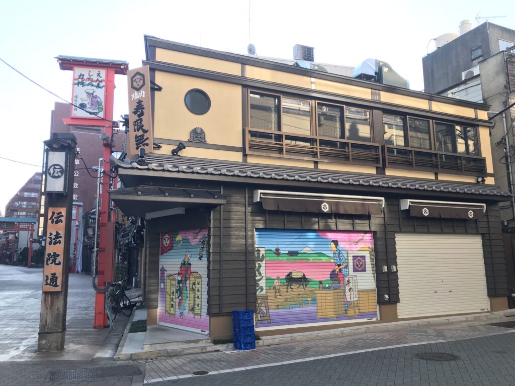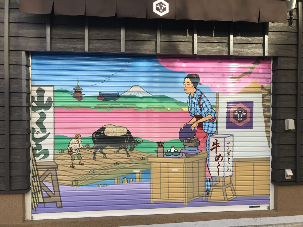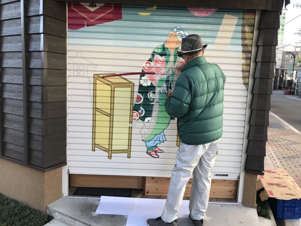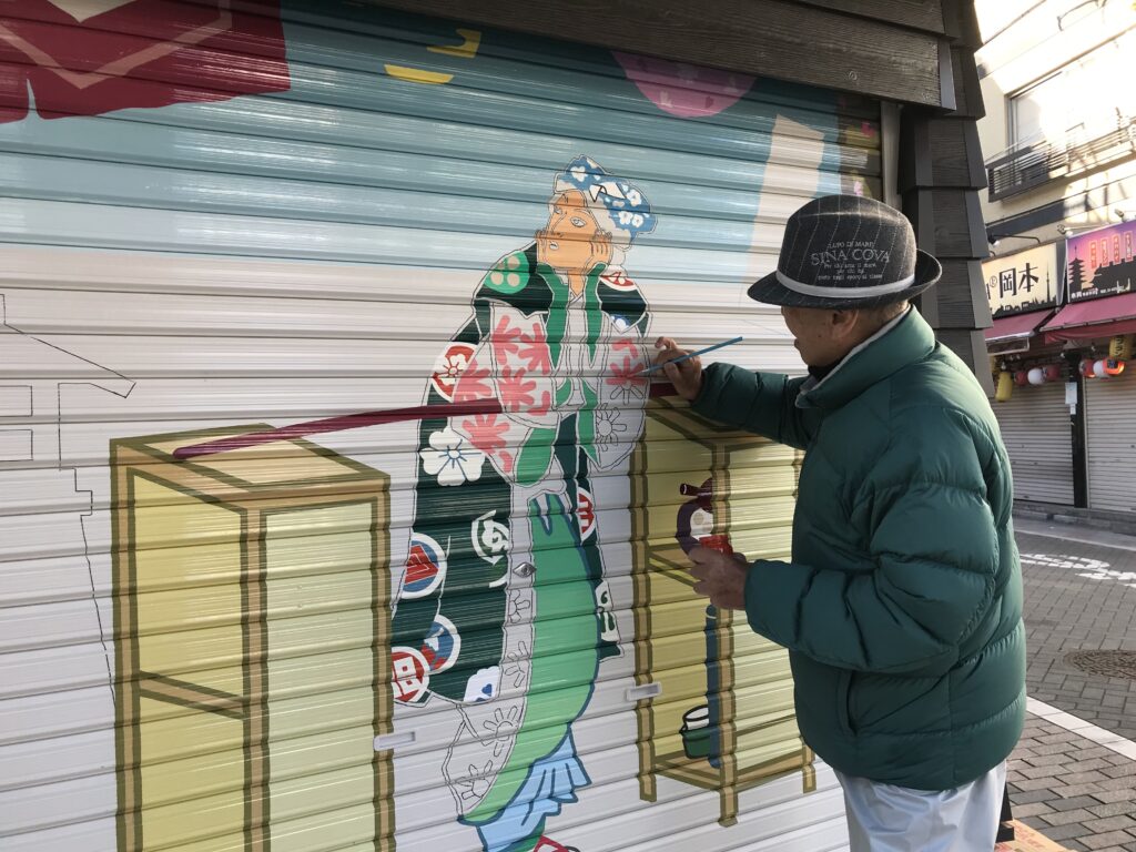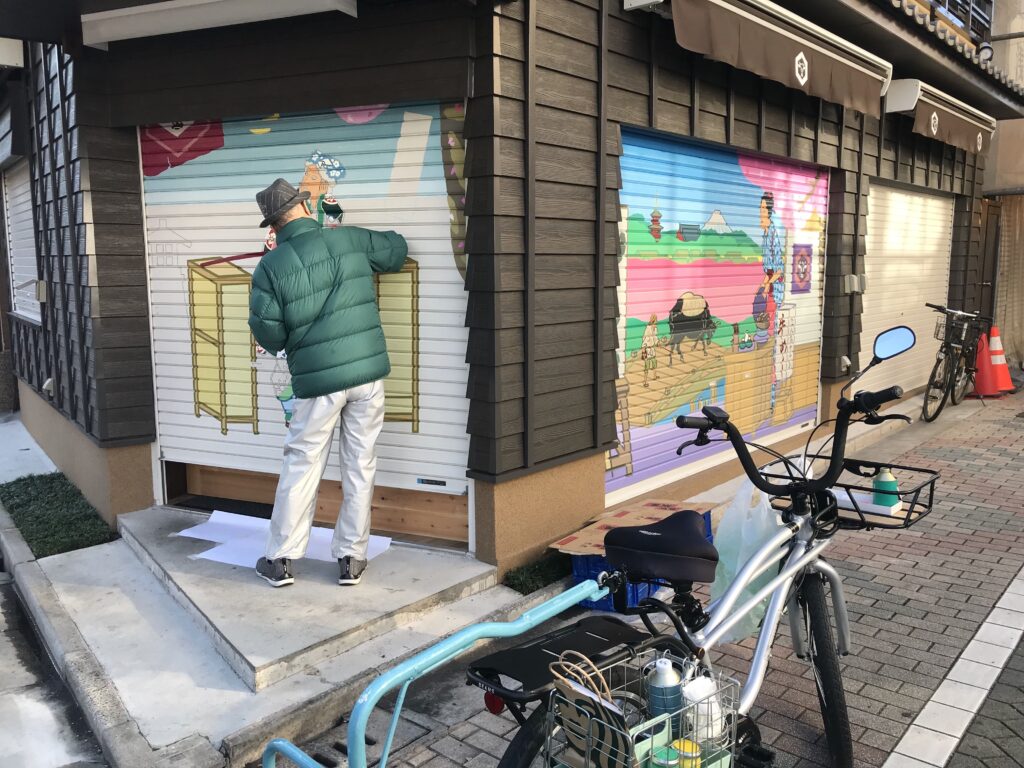 浅草のお店のシャッターを飾る絵画!
