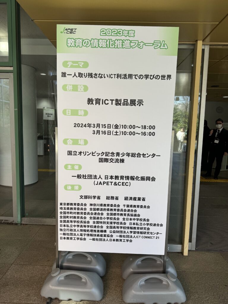 2024年3月15日(金)~16日(土)、2023年度JAPET&CEC主催「教育の情報化推進フォーラム」が、国立オリンピック記念青少年総合センター国際交流棟で開催される。今年のテーマは、「誰一人取り残さないICT利活用での学びの世界」である。コロナ禍前のように参加者も多かった。