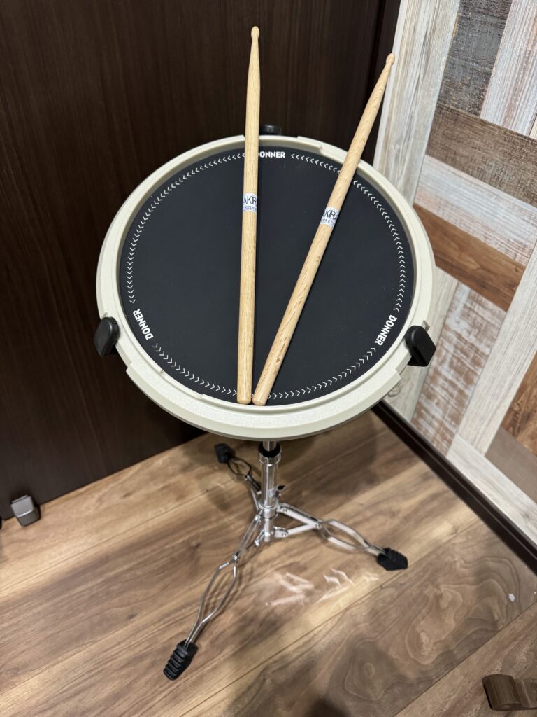 この音楽スタジオにはドラムセットがある。ドラムスティックを買ってたたいている。ドラム練習パッドも購入し、YouTubeを見て練習をしている。ドラムは難しいがテンポの練習と気分転換にはもってこいのような感じがする。