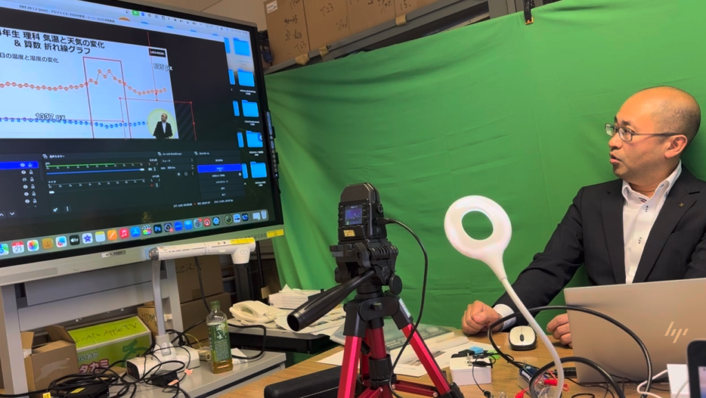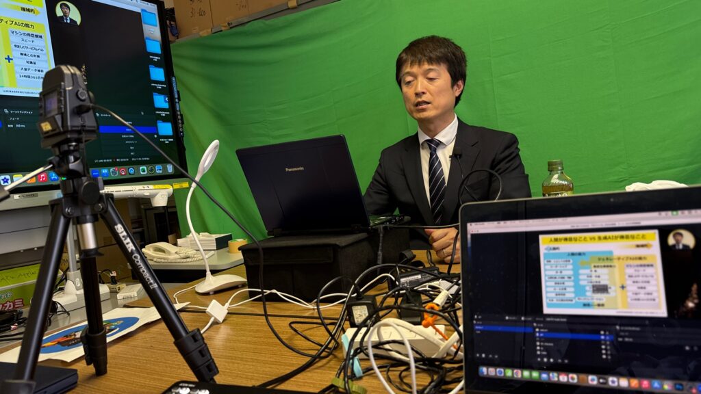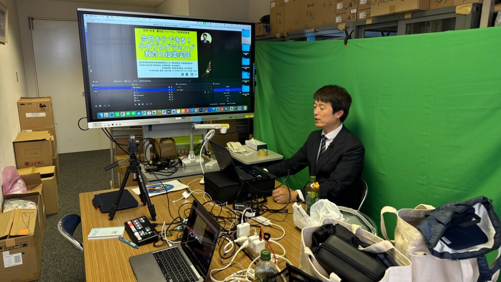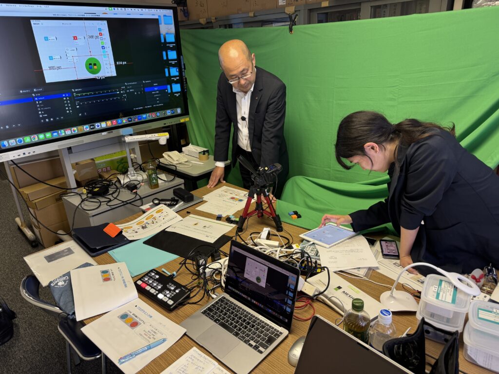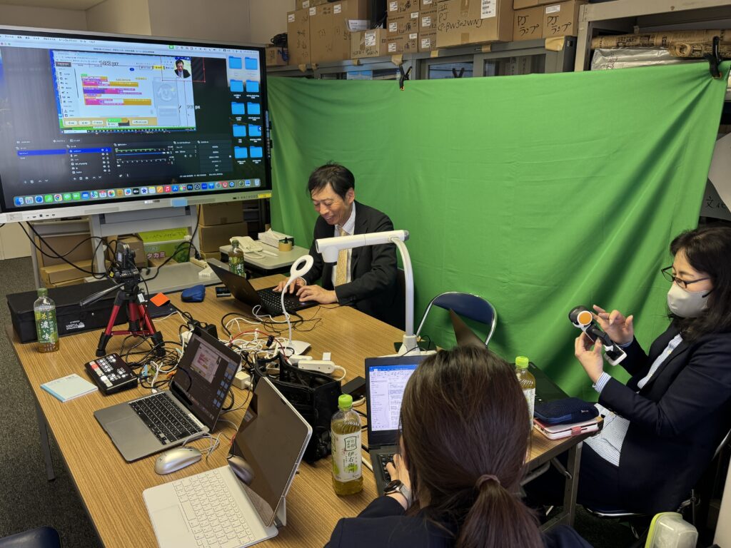 2025年5月21日、内田洋行のIさんとKさんに来ていただき動画の撮影を行う。この研修も昨年までは対面で行ってきた。