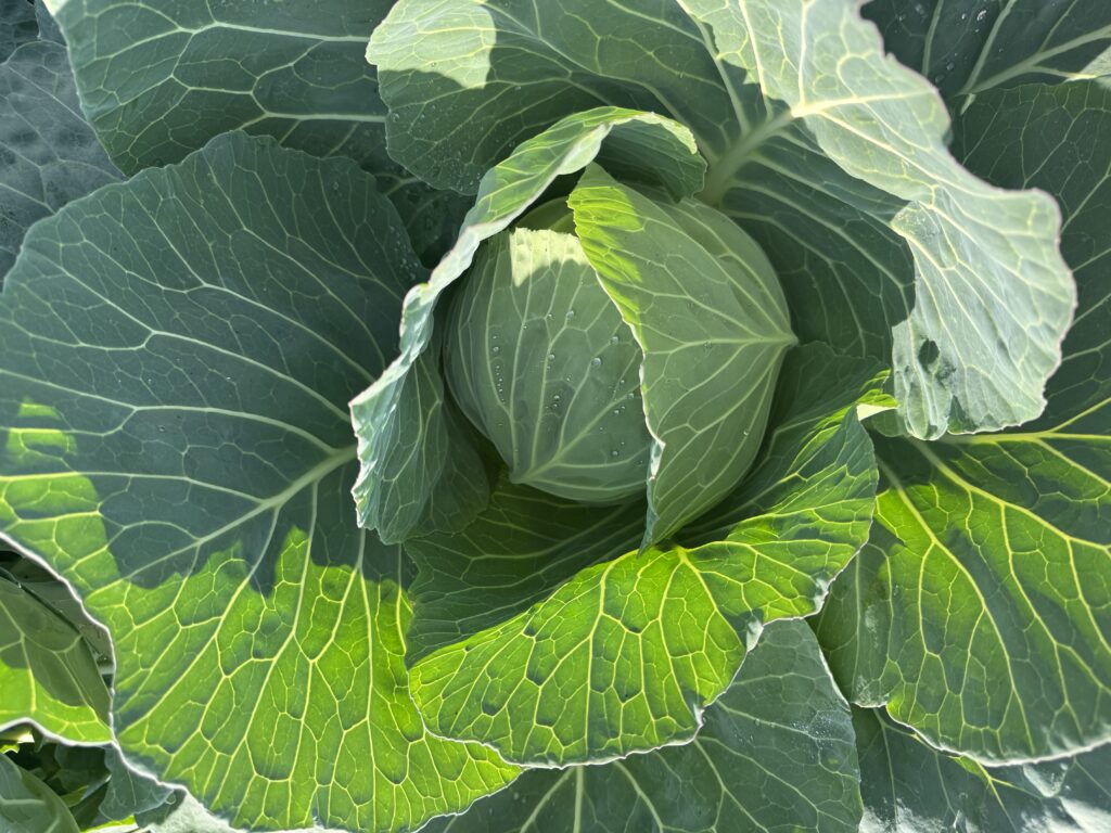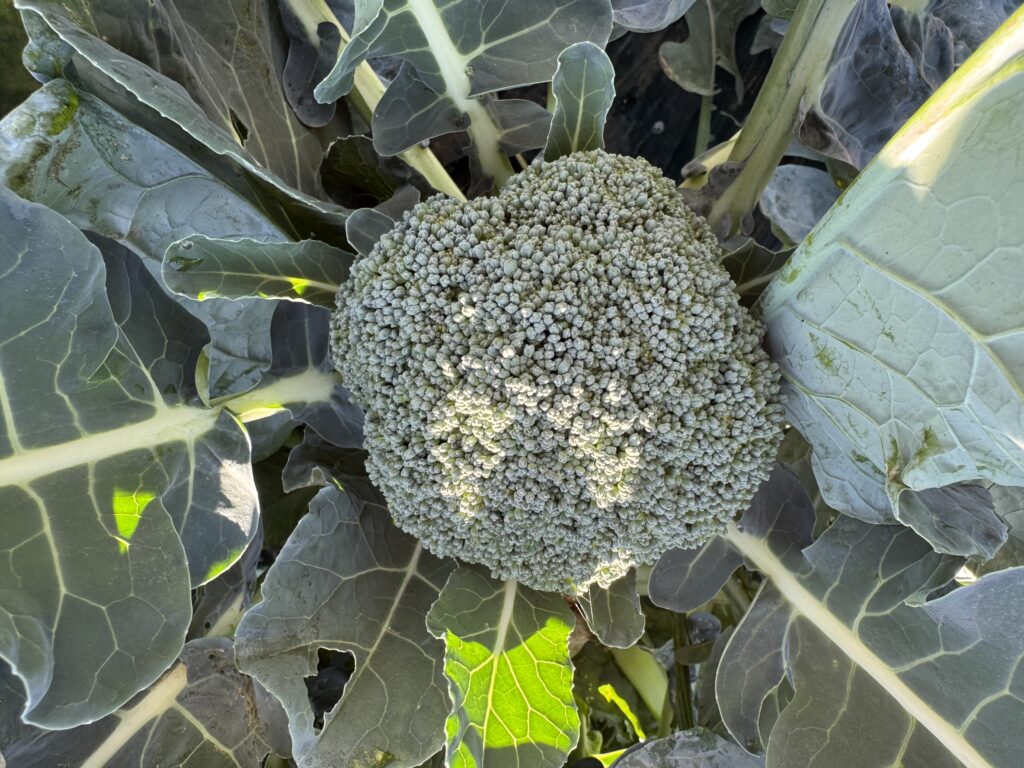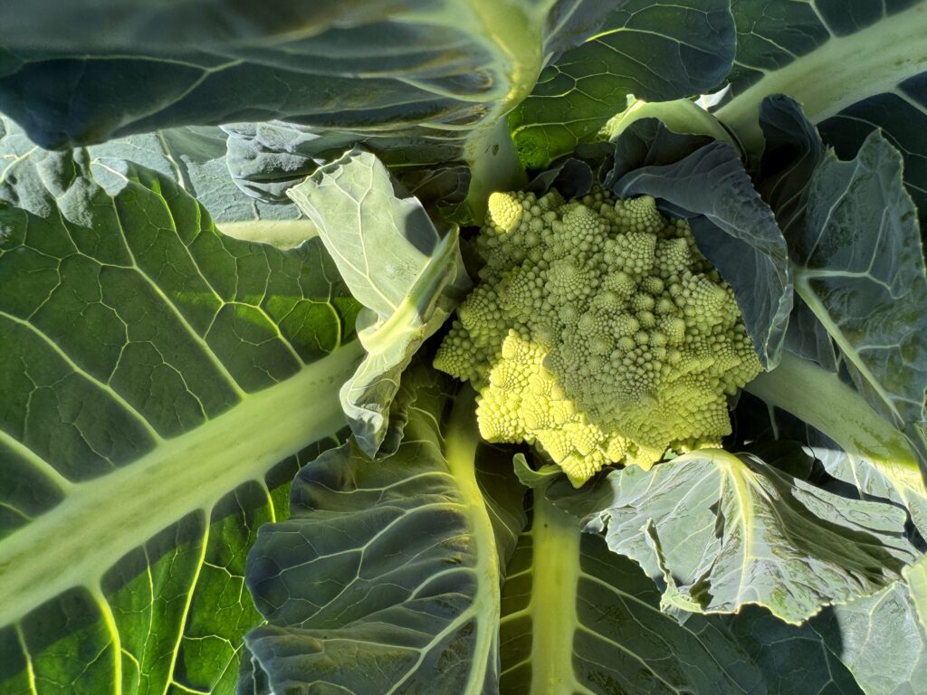 カリフラワーにも種類があり、こんな大きな葉っぱの中に食べられる部分があります。