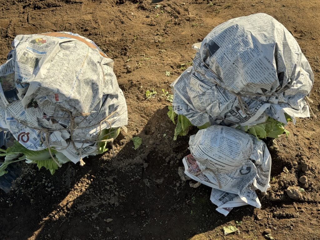 里芋の収穫第2弾! カリフラワーの葉に埋まる!