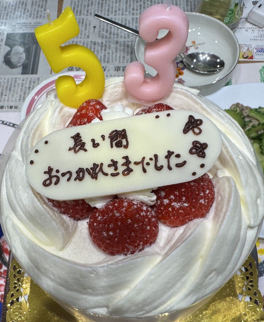我が家に帰ると、クマさんのお飾りとケーキが用意されていました。ああ、これで本当に仕事が終わったのだなと実感しました。月曜日から浅草まで電車に乗って行く必要はないのだ!と思いました。