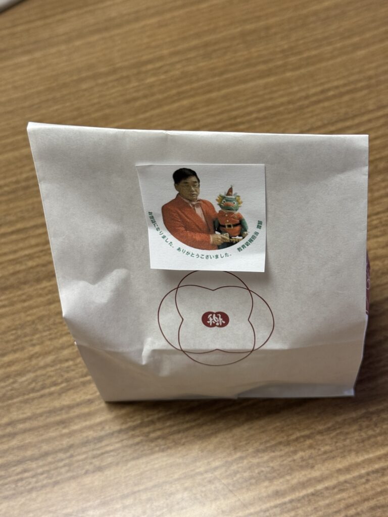 セレモニーはS課長の挨拶の後、私が喋ろうとしたら、通路には指導室の6人の指導主事が勢揃いして聞いていました。その後、課長を交えて係の記念撮影の時も6人の指導主事がドドッと入ってきてくれました。ちょっとビックリ。